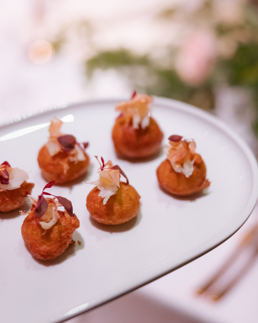 Laissez-Faire Catering designed a bespoke menu that mirrored the fragrance’s elegance and natural inspiration. Guests were welcomed with refined canapés such as Jerusalem artichoke beignets with salt cod and seared scallops with paperbark truffle butter, alongside vegan creations like roasted eggplant panna cotta with macadamia.